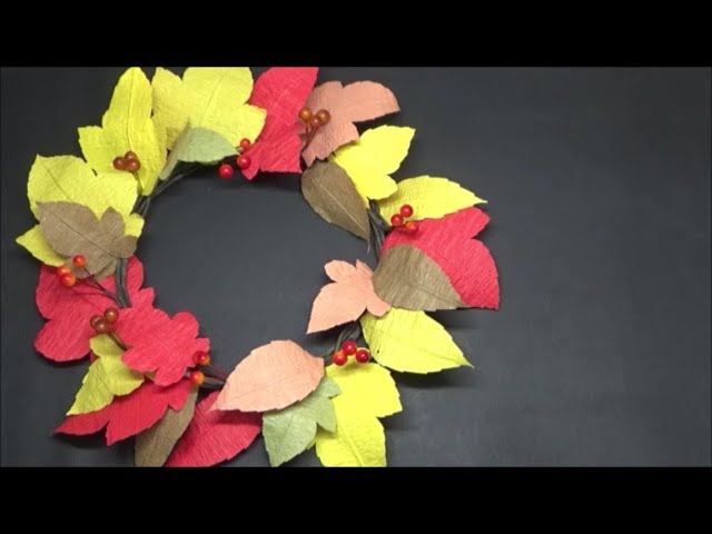 100円均一 紙で作る秋の飾り落ち葉のリースの作り方 DIY How to make a wreath of fallen leaves。