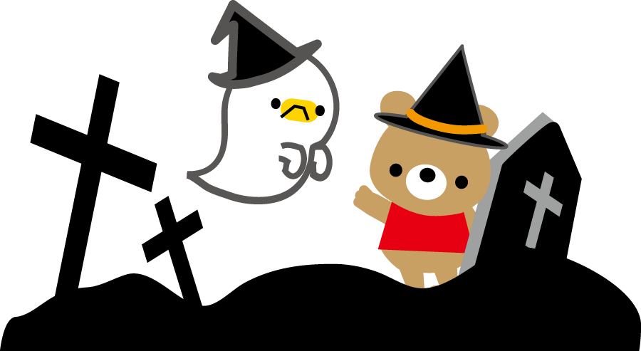 ハロウィン・かわいいお化けと十字架のイラストフリー素材 イラストミント。