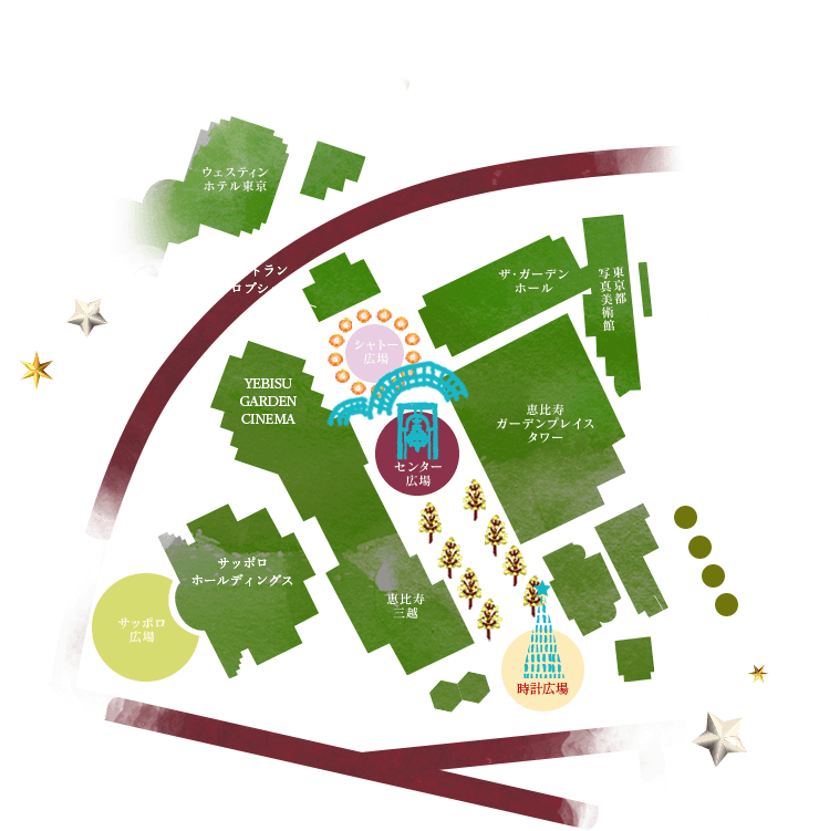 恵比寿ガーデンプレイス Baccarat ETERNAL LIGHTSバカラエターナルライツ ―歓びのかたち―渋谷区 の地図・アクセス イルミネーションガイド2024-2025 - ウォーカープラス。