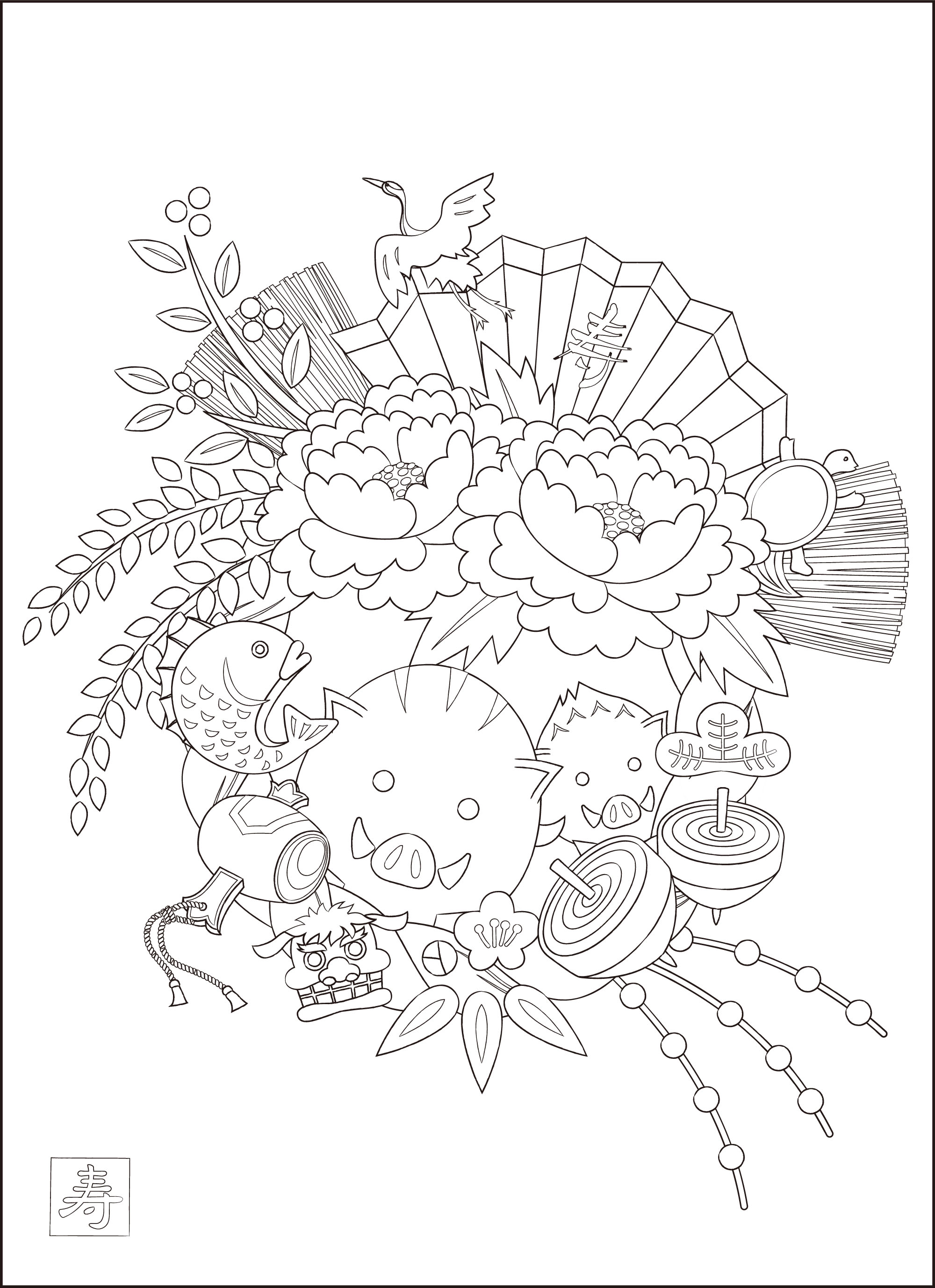 高齢者レク素材 しめ縄定番塗り絵介護レク広場~レク素材やレクネタ 企画書 の無料ダウンロード。