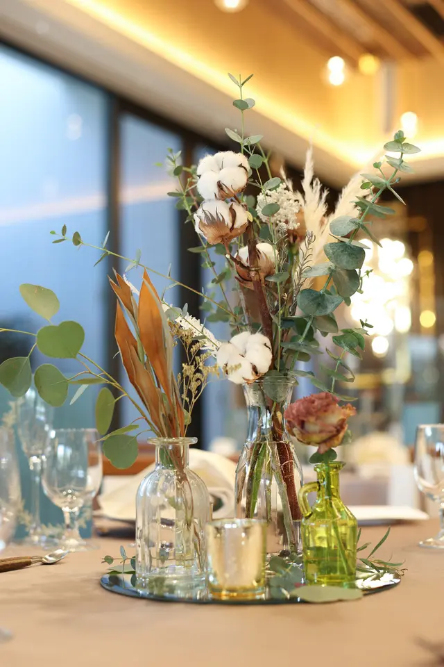 ガラスの小瓶を使ったおしゃれなメインテーブル装花10選 今週のスタスナ omotte magazine fromANNIVERSAIRE記念日にまつわるマガジン。