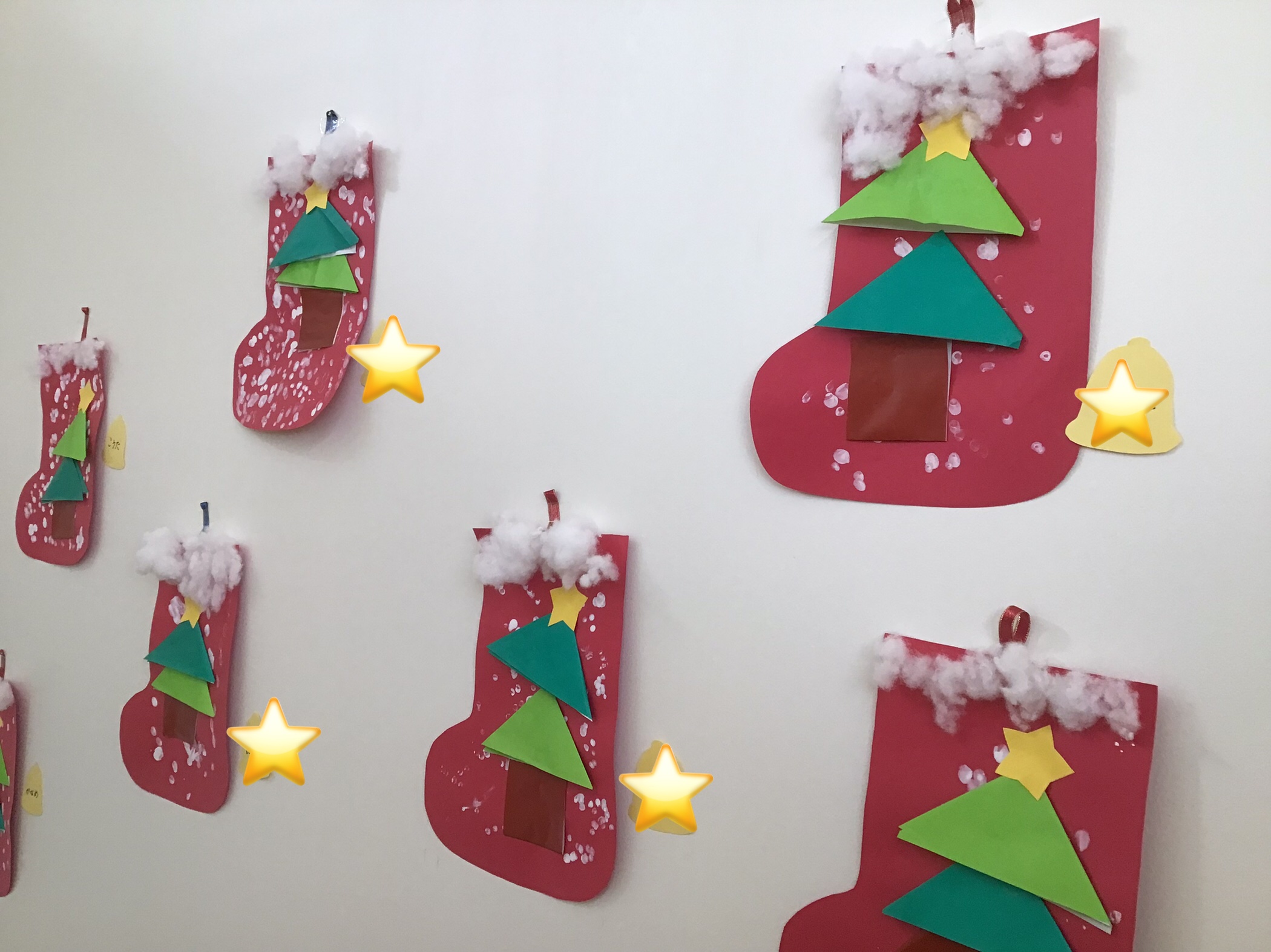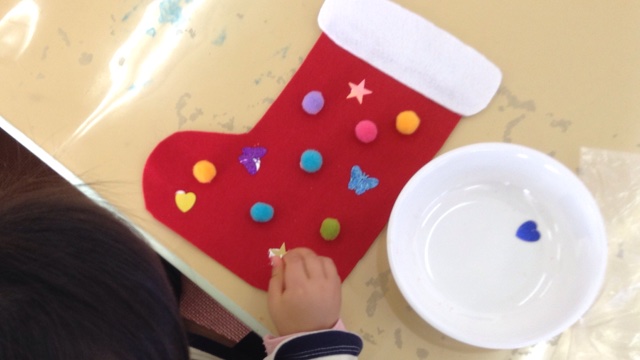 日本語幼稚園でのクリスマス工作〜サンタさんの靴下〜』。