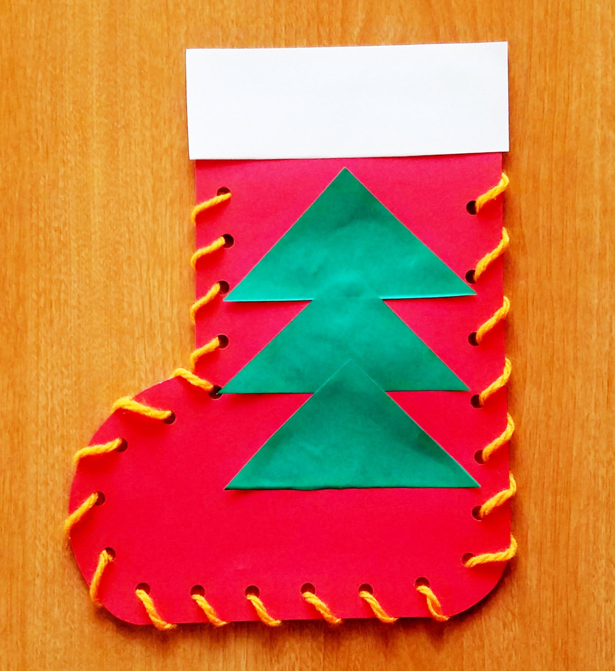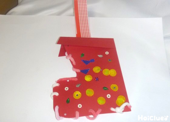 紐通しで作る靴下のクリスマス飾り〜手先を使ったクリスマス製作〜保育と遊びのプラットフォーム ほいくる。