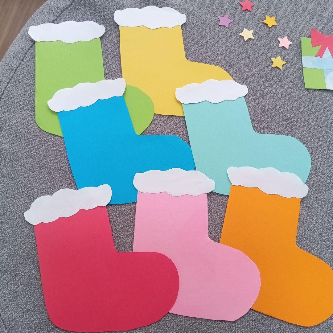 保育園 12月製作「靴下」アイデア3種!切り抜き・毛糸・切り絵でかわいい靴下を作ろう保育士のお仕事静岡。