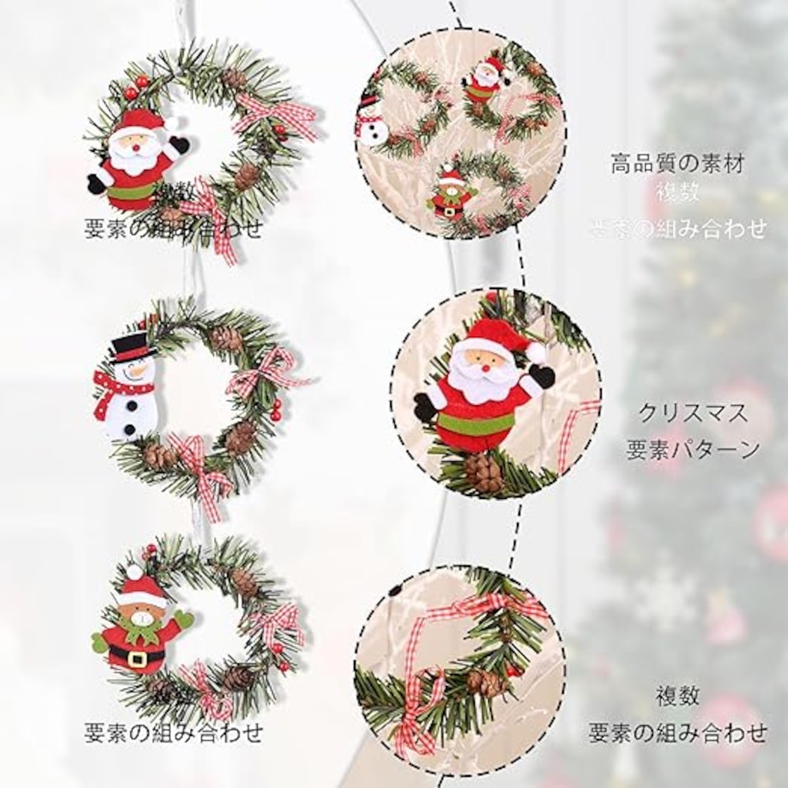 2024 おもちゃ 玄関ドア用 リース クリスマス飾り クリスマス リース、屋外、冬、玄関ドア、ホリデー リース。