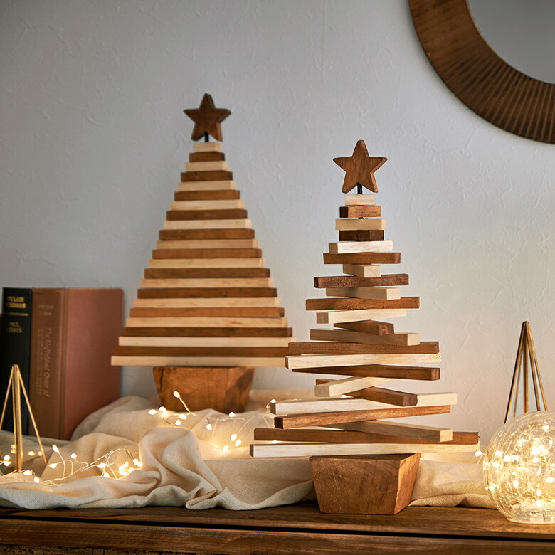 クリスマスツリー クリスマスオブジェ ウッド 木製 天然木 アイアン 約 W 25 × D 10 × H 40 cm ナチュラル ベージュ オブジェツリー デコレーション 卓上 シンプル 手作り クリスマス おしゃれ 北欧 雑貨 インテリア アジアン バリ14018。