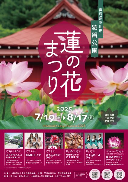 こんにちは! 蓮の花まつりのポスターが出来上がりました🎵 期間中はミニライブやぷらすマルシェ、 ヨガイベントなどなど企画が目白押し☆ イベント内容は当協会HPにて随時更新✨SNSでも更新していきます👌 猿賀公園で夏の思い出をぜひ作ってくださいね😆 平川市観光協会。