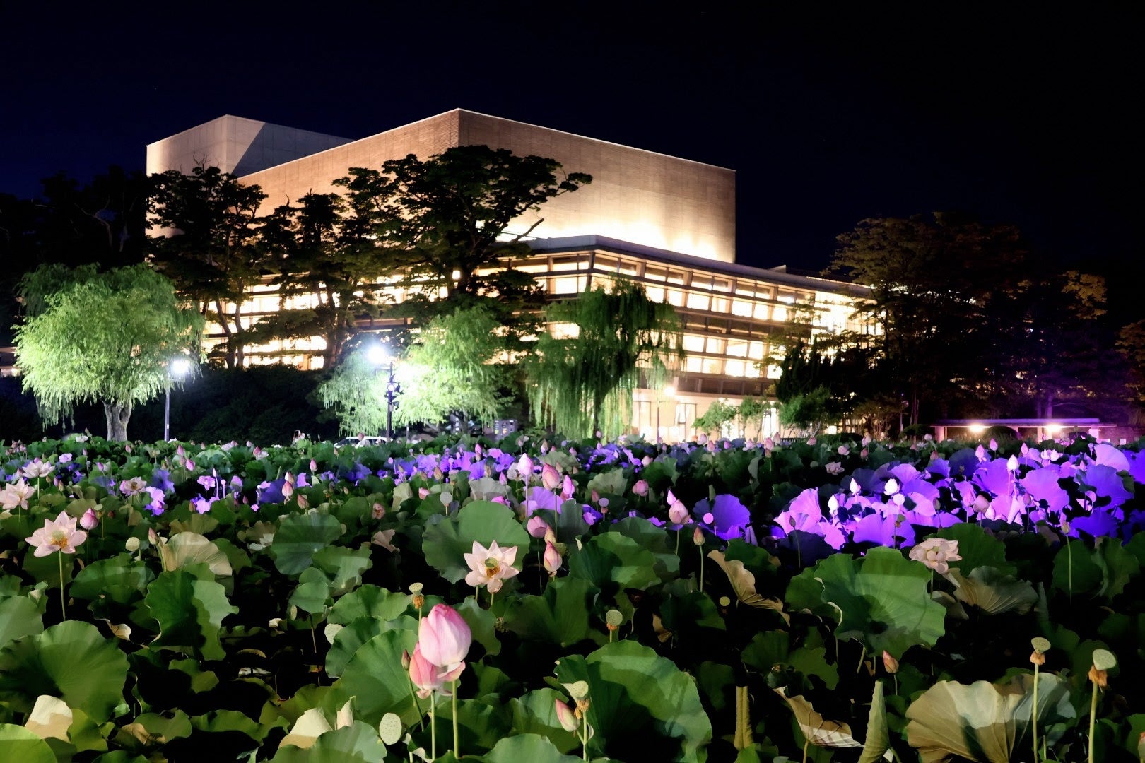 千秋公園蓮の花ライトアップ秋田市のプレスリリース。