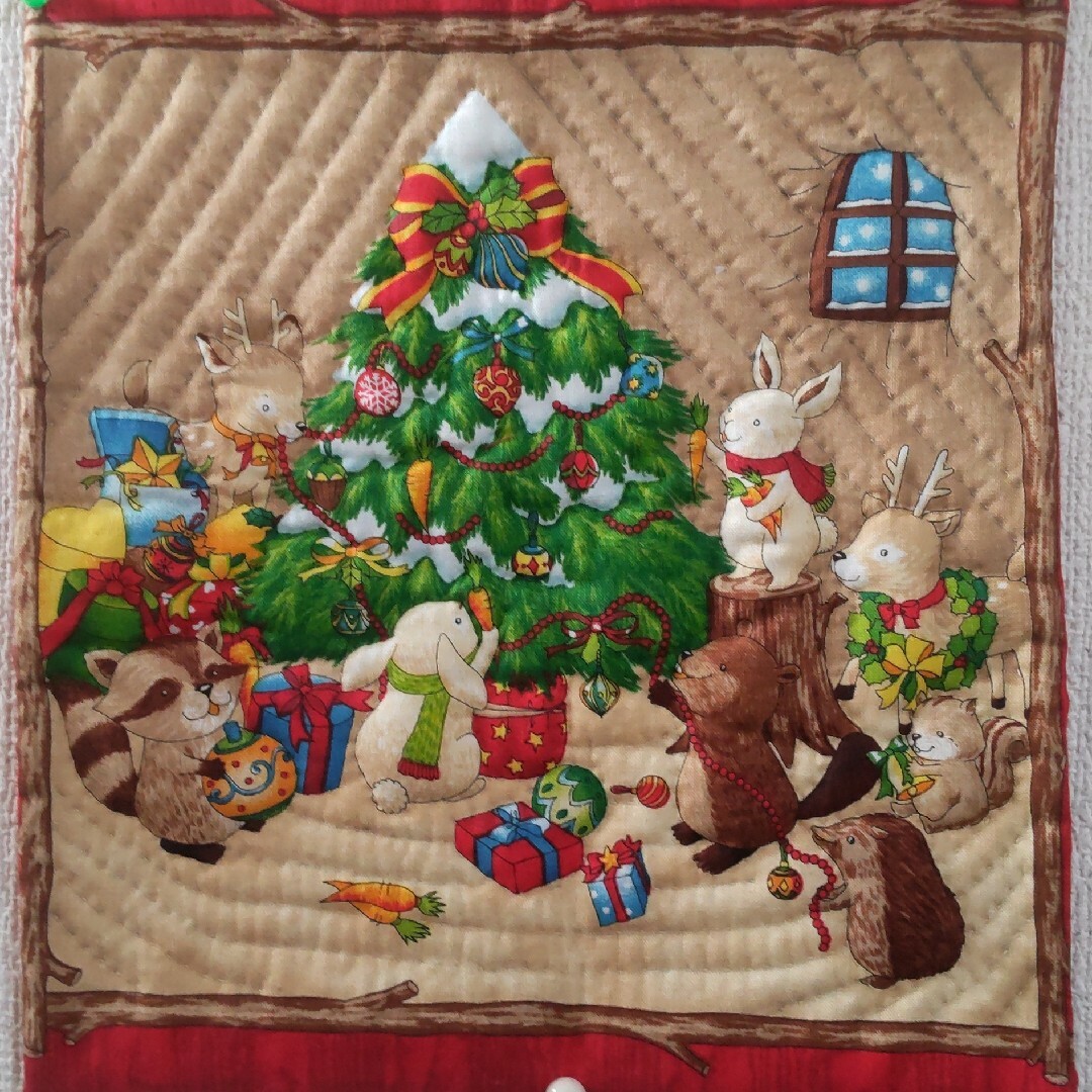 ハンドメイド クリスマス キルト タペストリー98×98cm。