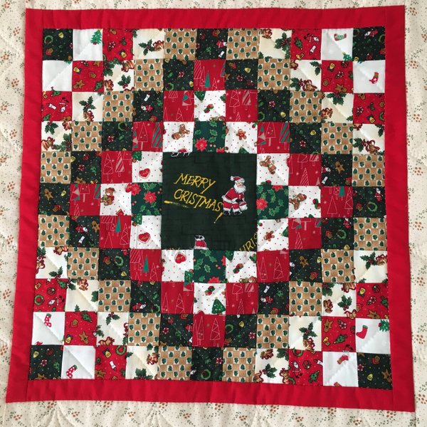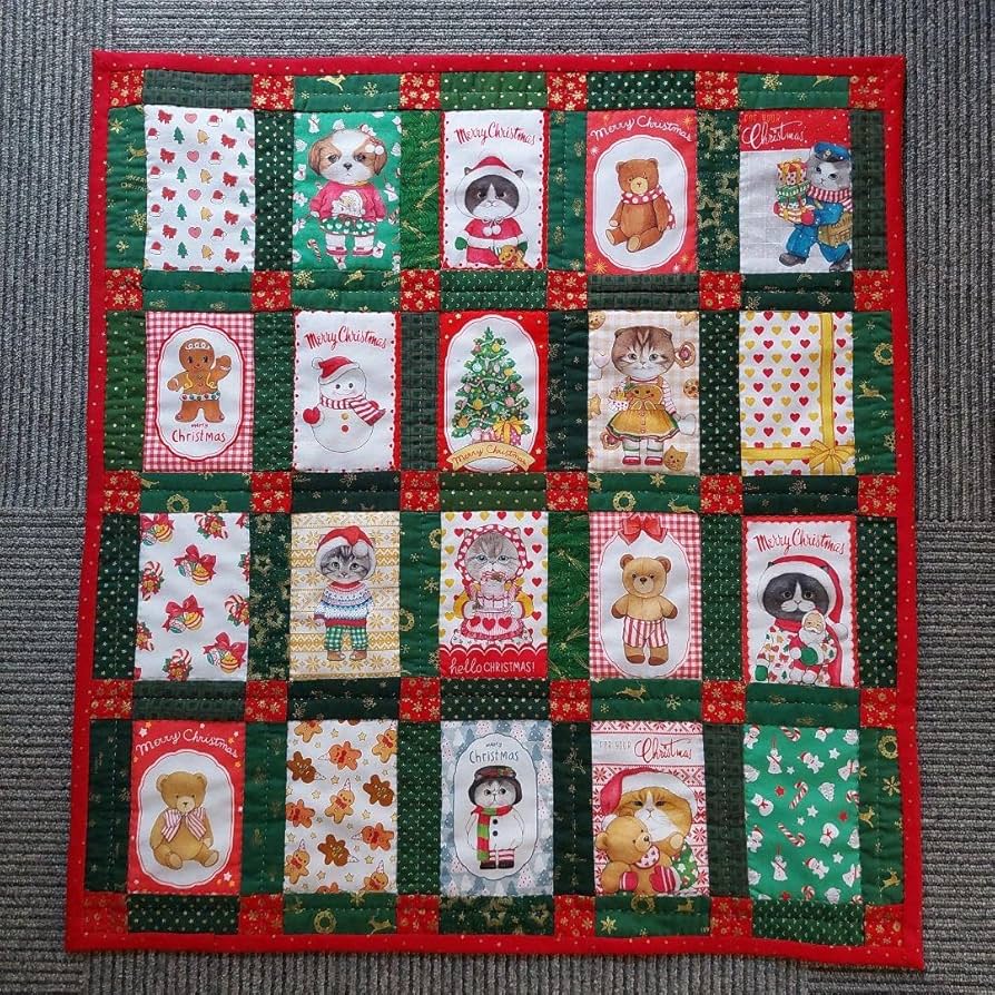 クリスマス柄 パッチワークキルト タペストリーやマットにも パッチワークタペストリー クリスマス キルトマット。
