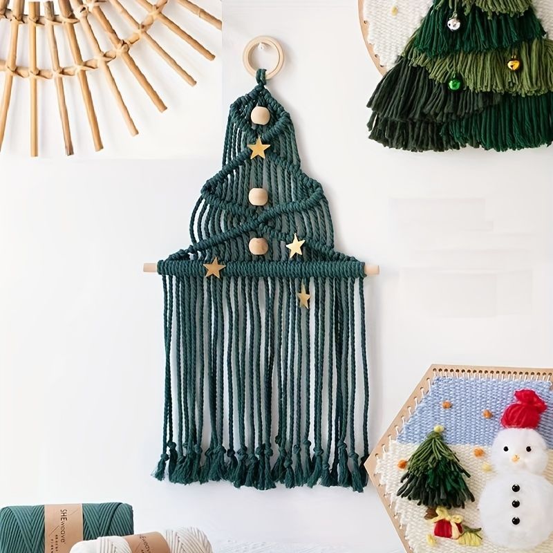 クリスマス タペストリー 壁掛け クリスマスツリー 編み物 小さめ マクラメコード 北欧 手作り 手芸キット 手作りキット 省スペース コンパクト小型 ミニツリー 壁に飾る アートワーク ミニクリスマスツリー デコレーション 雰囲気満々 部屋 商店 おしゃれ ナチュラル。