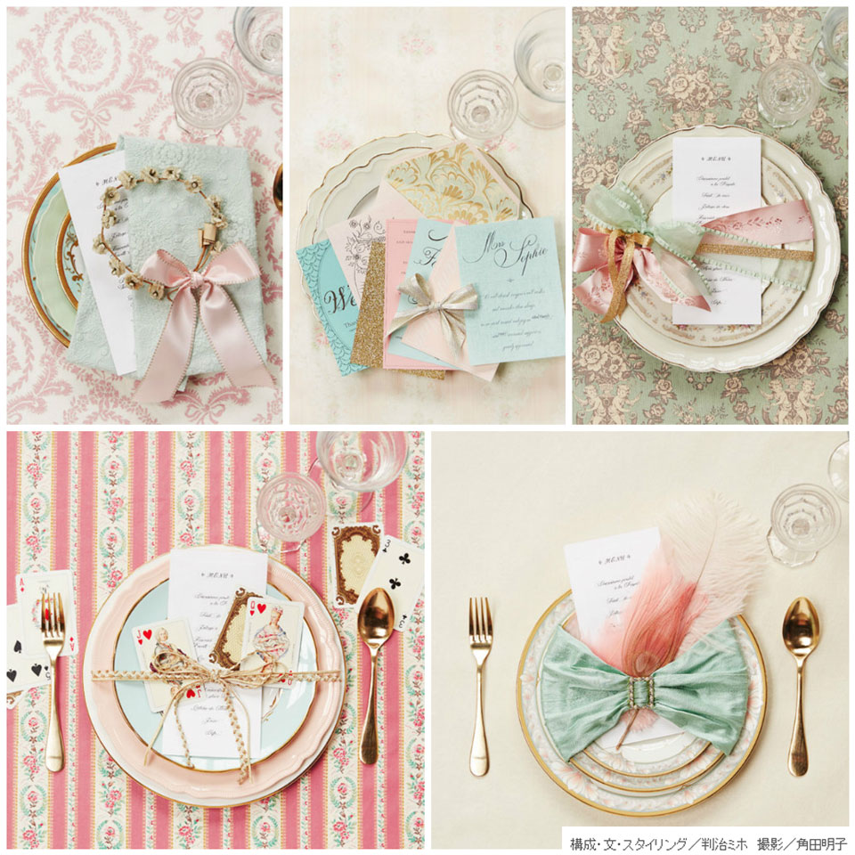 色合わせを楽しむショープレートアイデア」スタイリスト判治ミホのwedding story book 76ゼクシィ。