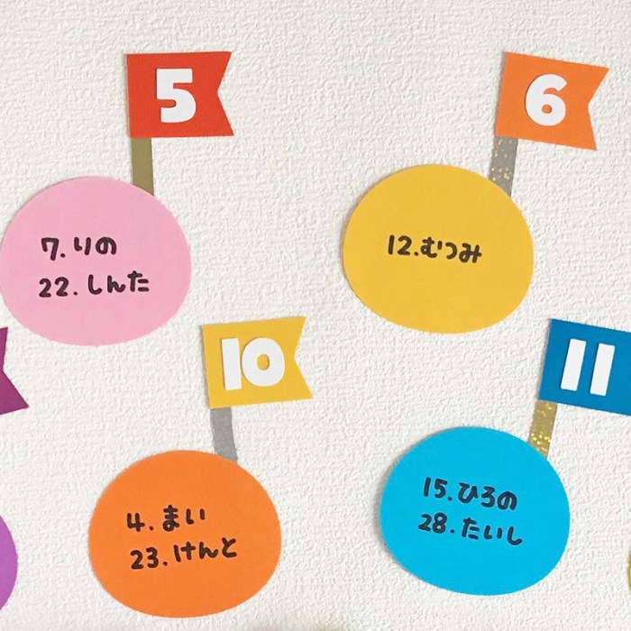 壁面飾り お誕生表 ねこと音符 お誕生日表 画用紙 壁面 音符 動物。