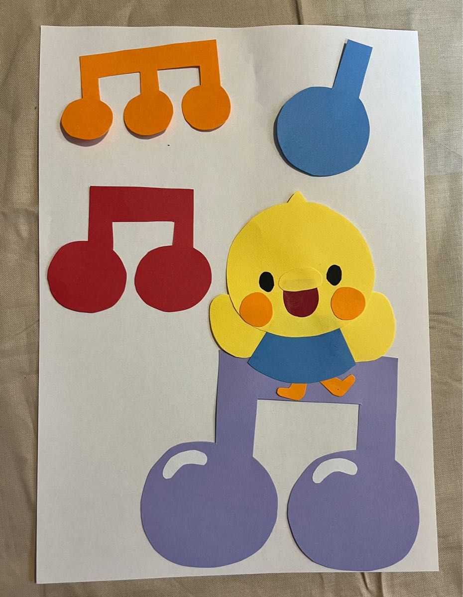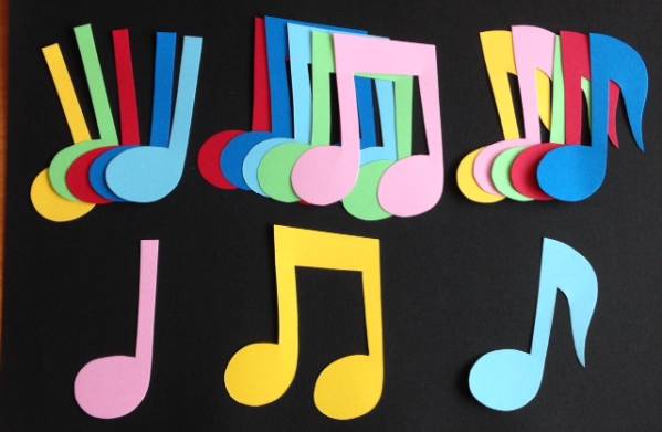 無料ダウンロード型紙で「音符」 の壁面飾りを作ってみた!音楽 音符 保育園 幼稚園 介護施設 デイサービス 壁面装飾 製作壁面飾り型紙工房。
