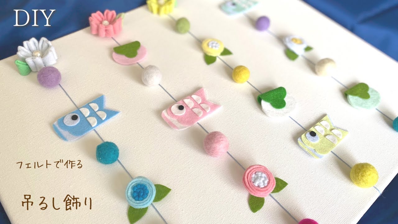 フェルト こどもの日🎏つるし飾りの作り方 縫わずにできる 切って貼るだけ‼️こいのぼりと一緒にどうぞ✨。
