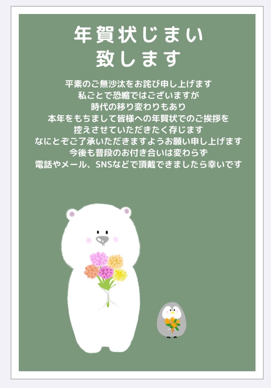 年賀状じまい、かわいいシロクマの寒中見舞い:イラスト無料。