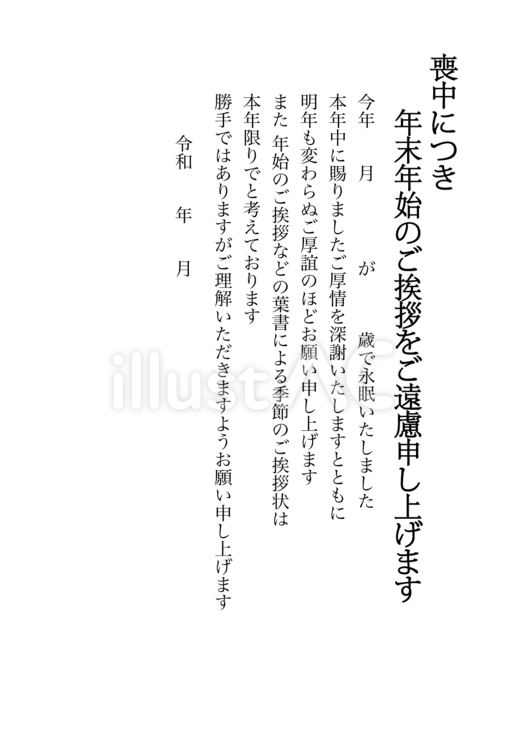 寒中見舞い年賀状じまいハガキテンプレートのイラスト素材107849863- PIXTA。