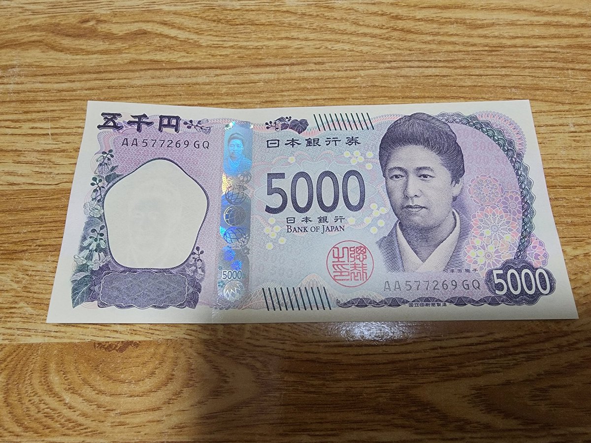 亀吉 on X: "新紙幣の三つ折りの仕方を検証。五万円札は、156mmなので3等分すると52mm。①梅子さんのお顔の左のこめかみを目安に左から右へ折る。②あとは付いた折り目に左側が内側になるように右側を折る。③ポチ袋に入れるときはノダフジが正面になるように入れる。