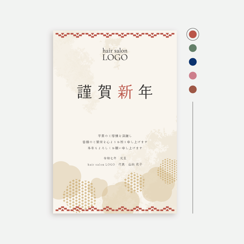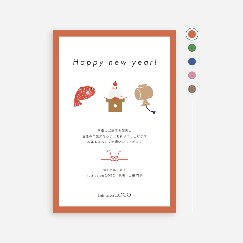 stockRooMs - ストックルームズ美容室・美容師・サロンの販促物 格安通販2025年度年賀状_縦_おめでたいお正月イラスト。