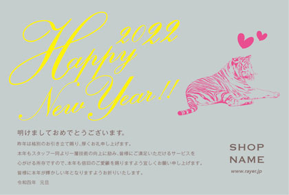 年賀状2022年美容サロンのおしゃれ寅年デザインDMH109。
