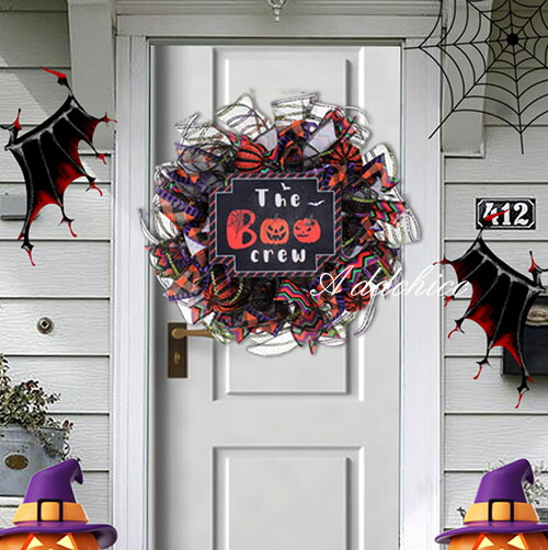 ハロウィン飾り玄関 ハロウィーンの花輪 リース ハロウィンリース 正面玄関の飾り 壁掛け 魔女の。