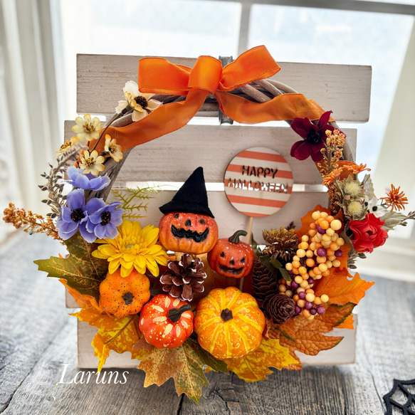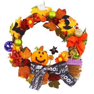 ハロウィンリース Lサイズ オータムリース 玄関 デコレーション 飾り付け 壁掛け 扉 国産 ハロウィン 玄関リースの。