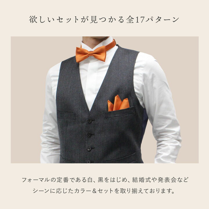 楽天市場 蝶ネクタイ&ポケットチーフセット 無地 日本製 ふじやま織 シルク メンズ グランクレエ 結婚式 披露宴 入学 入園 卒業 卒園 成人 発表演奏 衣装 大人 赤 オレンジ ブルー シルバー 白 メール便送料無料 : Gran creer。