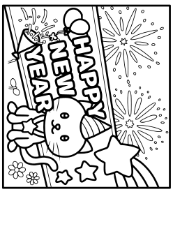 冬・お正月・ぬり絵・ワーク 巳年のお正月のハッピー塗り絵フタバのフリーイラスト。