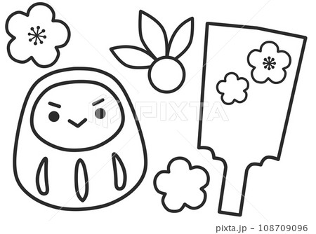 ダルマと羽子板のぬりえのイラスト素材108709096- PIXTA。