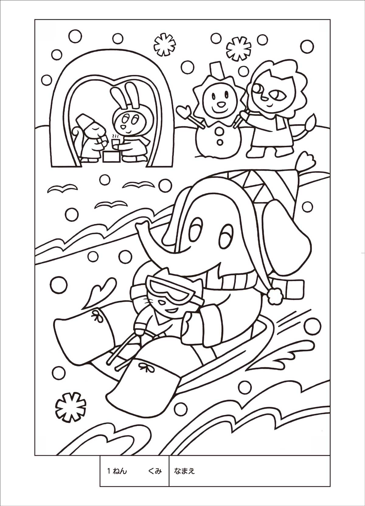1月のぬり絵雪あそび・お正月 プリント配付OK みんなの教育技術。