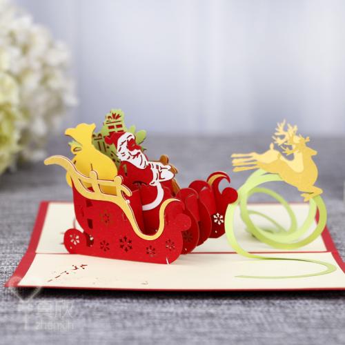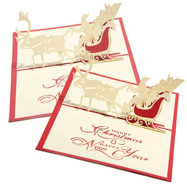 楽天市場 最短当日出荷◇メッセージ カード クリスマス グリーディング 飛び出す 切り絵 芸術 立体 3D トナカイ と サンタ さん ソリ 赤レッド ホワイト 白カード+封筒 × 2つセット: ドールハウスと雑貨 moin moin。
