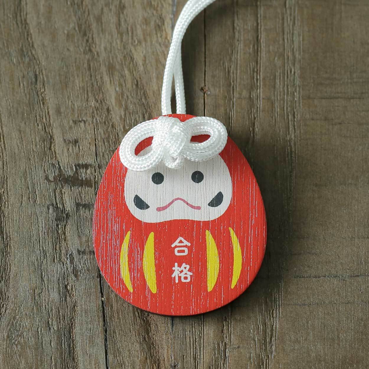 合格祈願 お守り 木札絵馬ストラップ だるま 大 根付紐 赤 付きパーツ材料の通販 大王製作所オンラインショップ<インボイス制度登録店>。