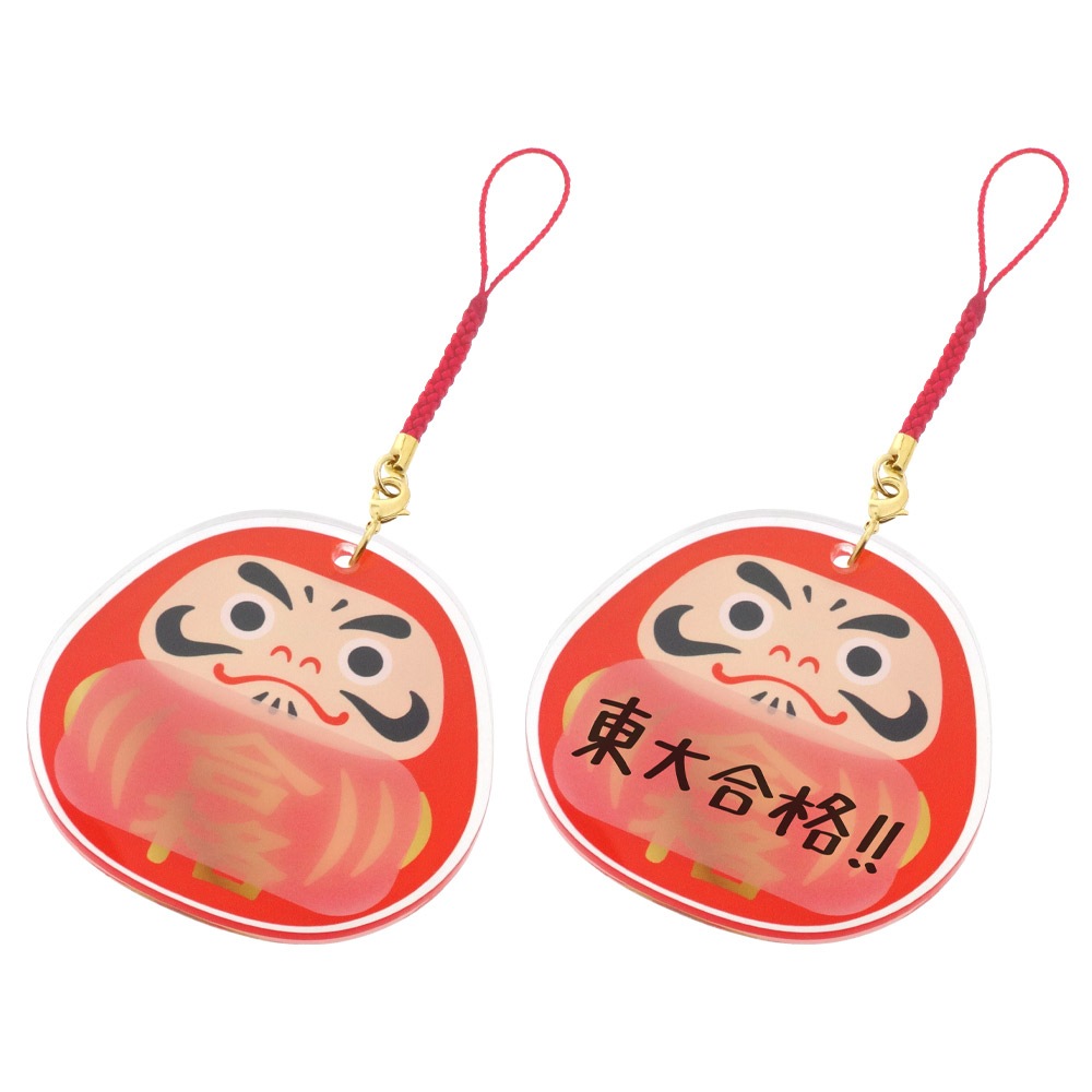 合格祈願 お守り アクリル絵馬ストラップ だるま 根付紐 赤 付きパーツ材料の通販 大王製作所オンラインショップ<インボイス制度登録店>。