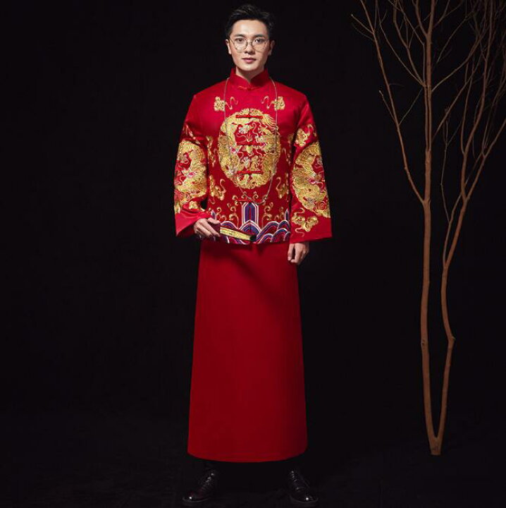新郎 男性用 婚礼衣装 中国風 秀禾服 唐装 フォーマルスーツ 結婚式 披露宴 二次会 前撮り ポリエステル 龍柄 中国の結婚式の新郎の衣装中国の長山男性用の中国の結婚式のジャケット男性用のチャイナドレス - Etsy 日本。