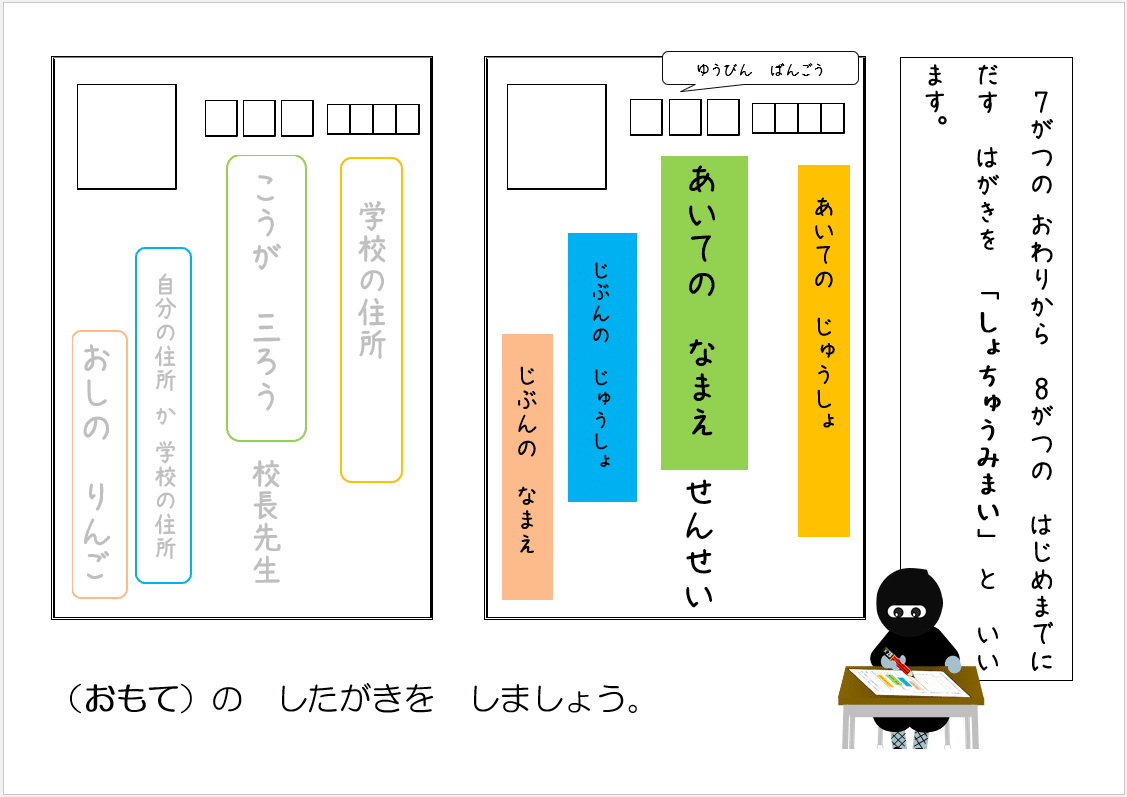 1年生 暑中見舞いを書いたよ。│恩納村立安富祖小学校。