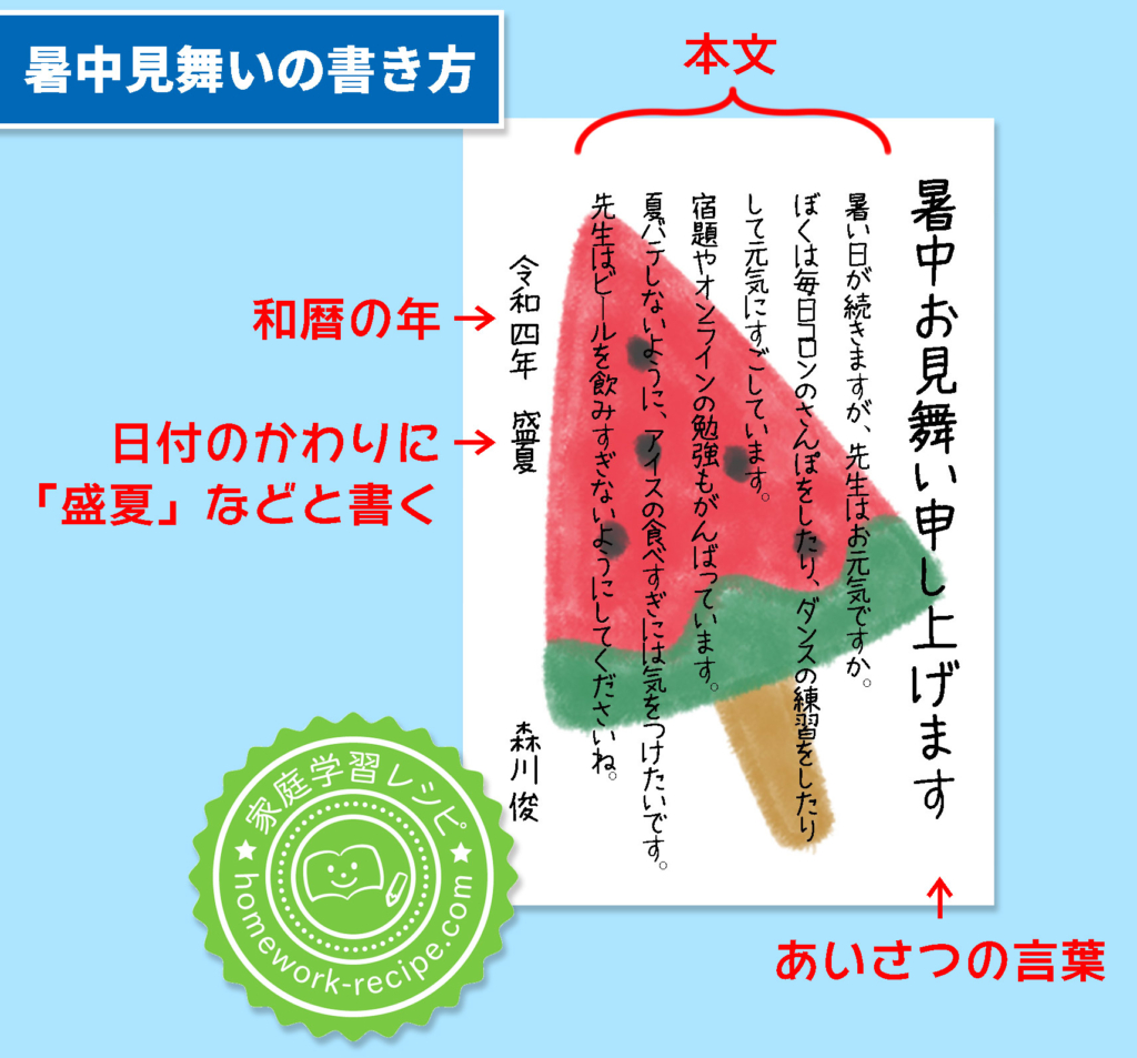 暑中見舞いの書き方と例文家庭学習レシピ。