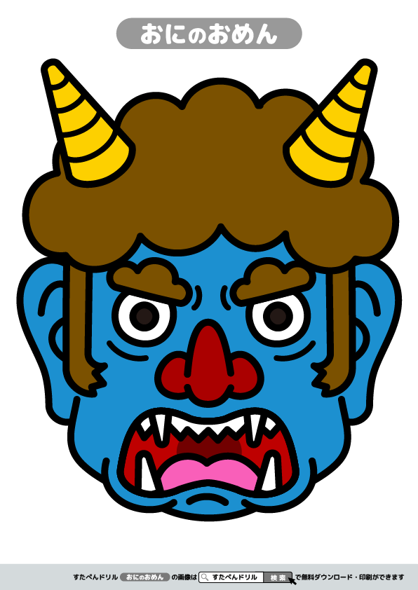 節分 鬼のお面イラスト プリント無料ダウンロード印刷。