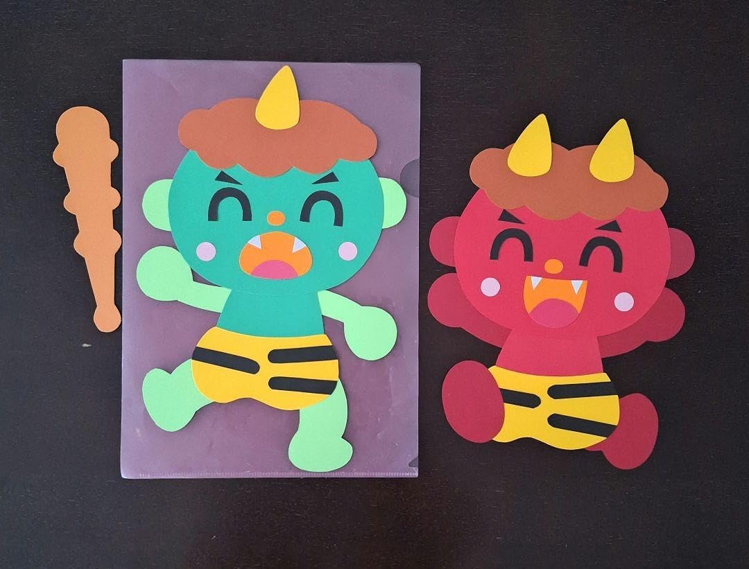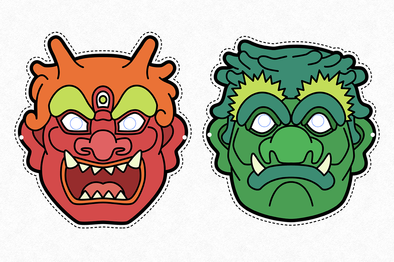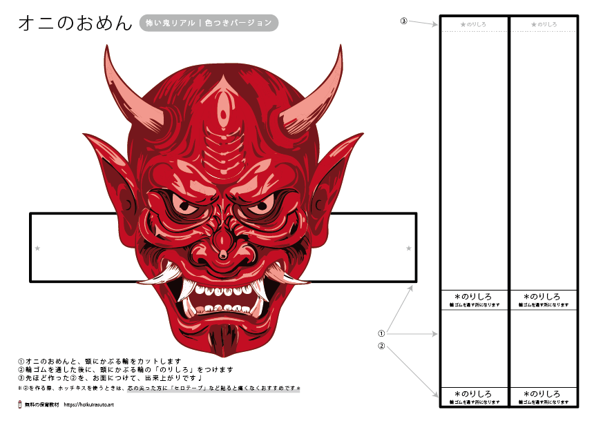 節分用 天燈鬼と龍燈鬼のお面を作ってみました! フリー素材奈良づけブログ。
