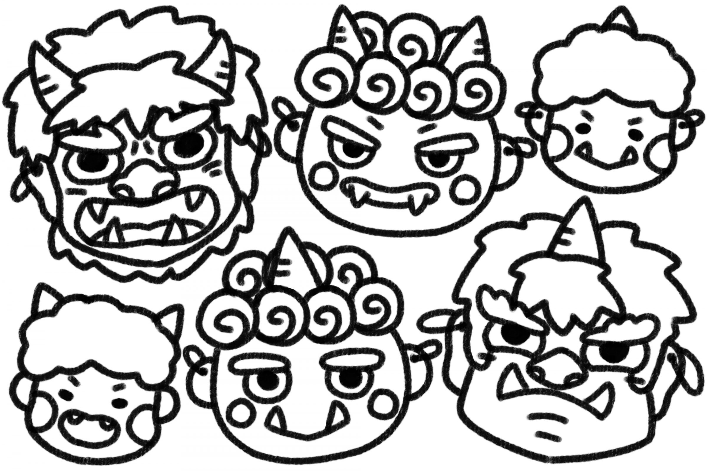 壁面飾り節分 鬼たち 鬼のお面ダウンロード素材配布 子どもと楽しむ!節分。