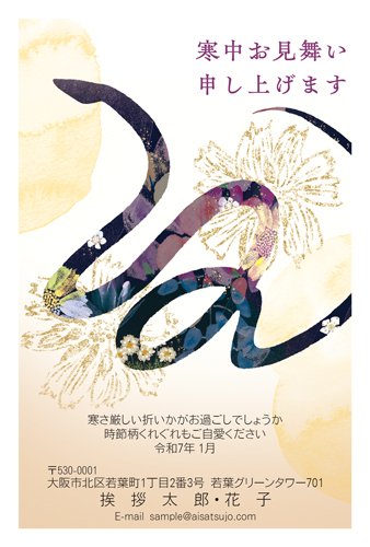 寒中見舞い 花2 No:100510│年賀状2025 令和7年・巳年・へび 無料素材。