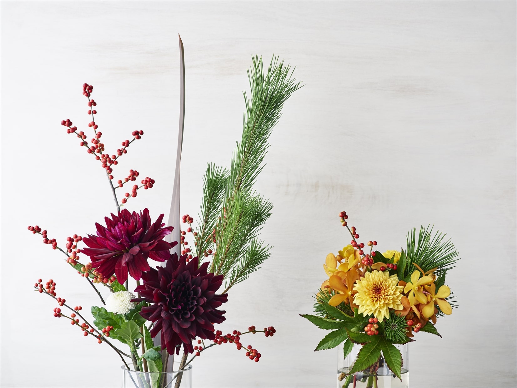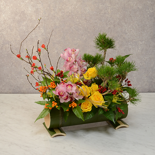 お正月の花 縁起の良いお正月の花の意味。松、千両、胡蝶蘭、菊、バラ、柳、竹など フラワーアレンジメント教室 横浜。