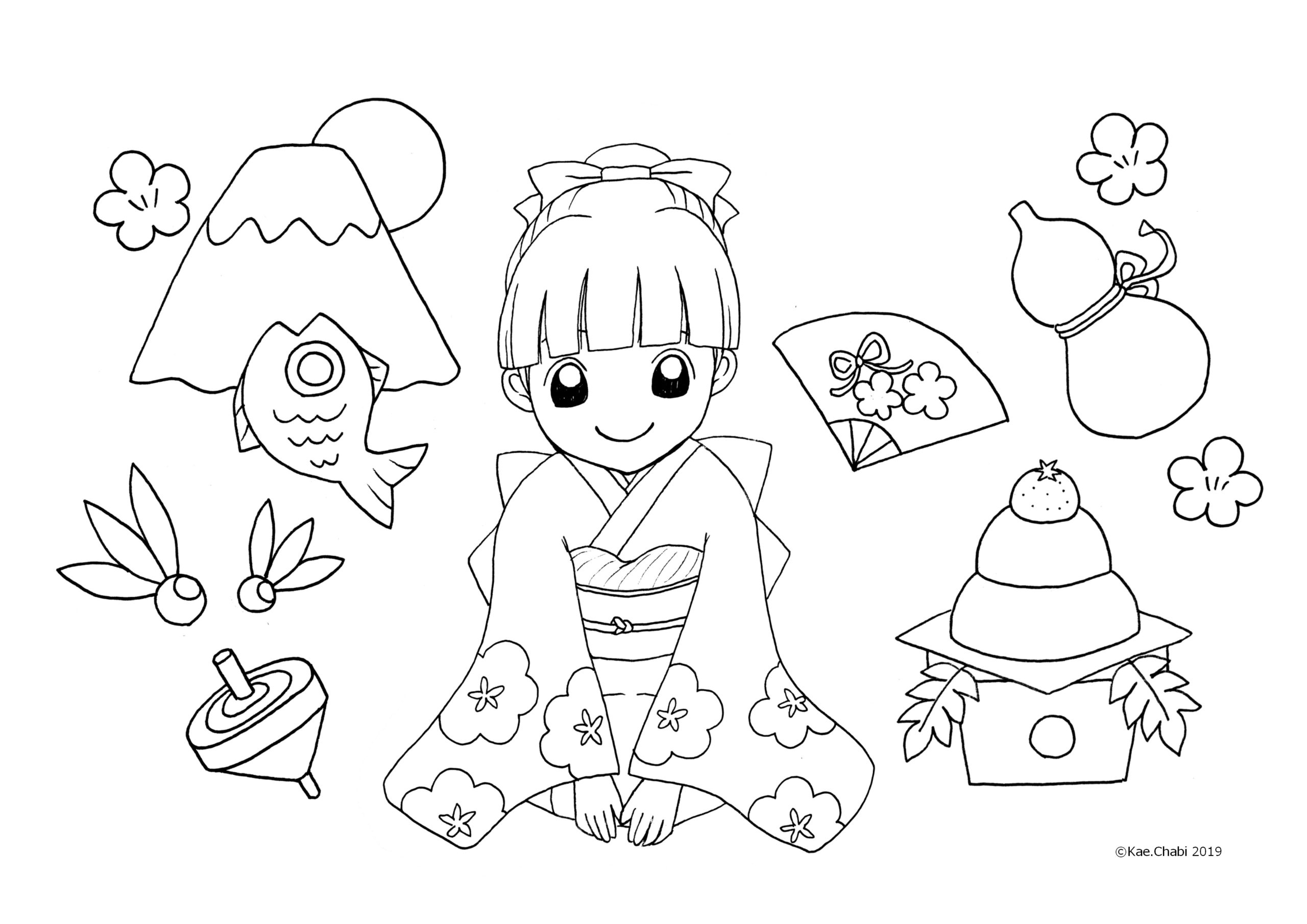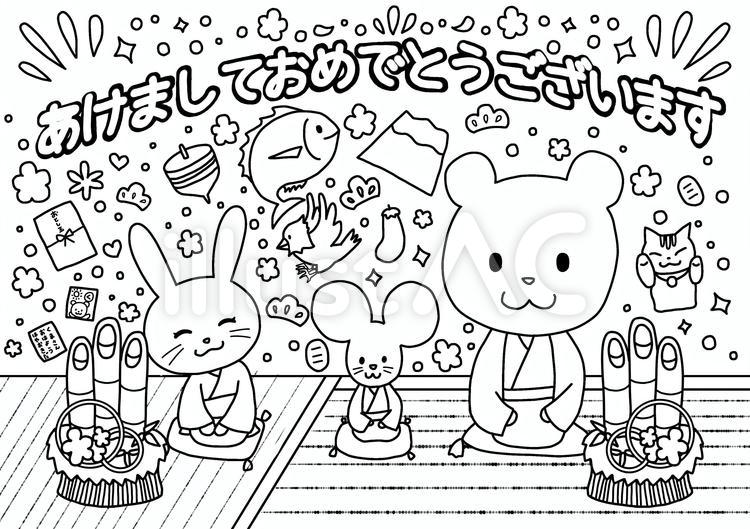 お正月 塗り絵イラスト無料イラスト・フリー素材なら「イラストAC」。