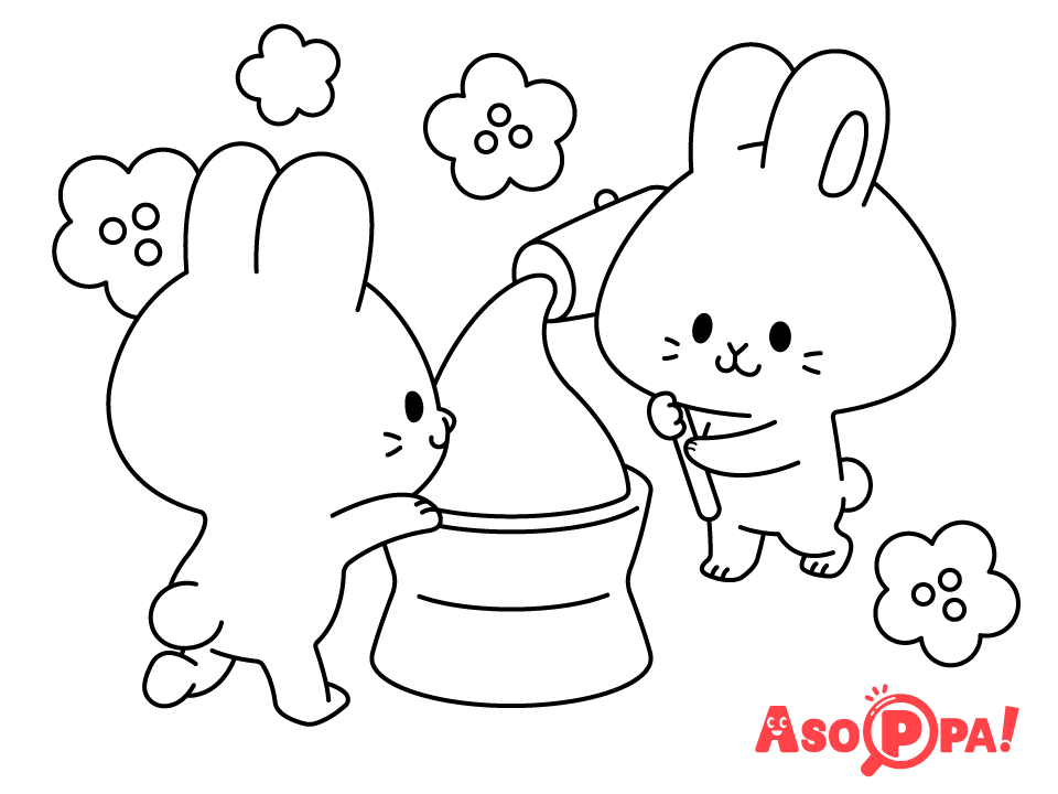 ぬりえ 季節正月の餅つき うさぎ無料ダウンロードOKな塗り絵です ASOPPA!レシピ - あそっぱ。