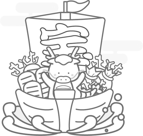 新年の始まり、お正月の縁起物ぬりえで願いを込めてみましょう!ひふ美と工房*昭和スケッチ帳。