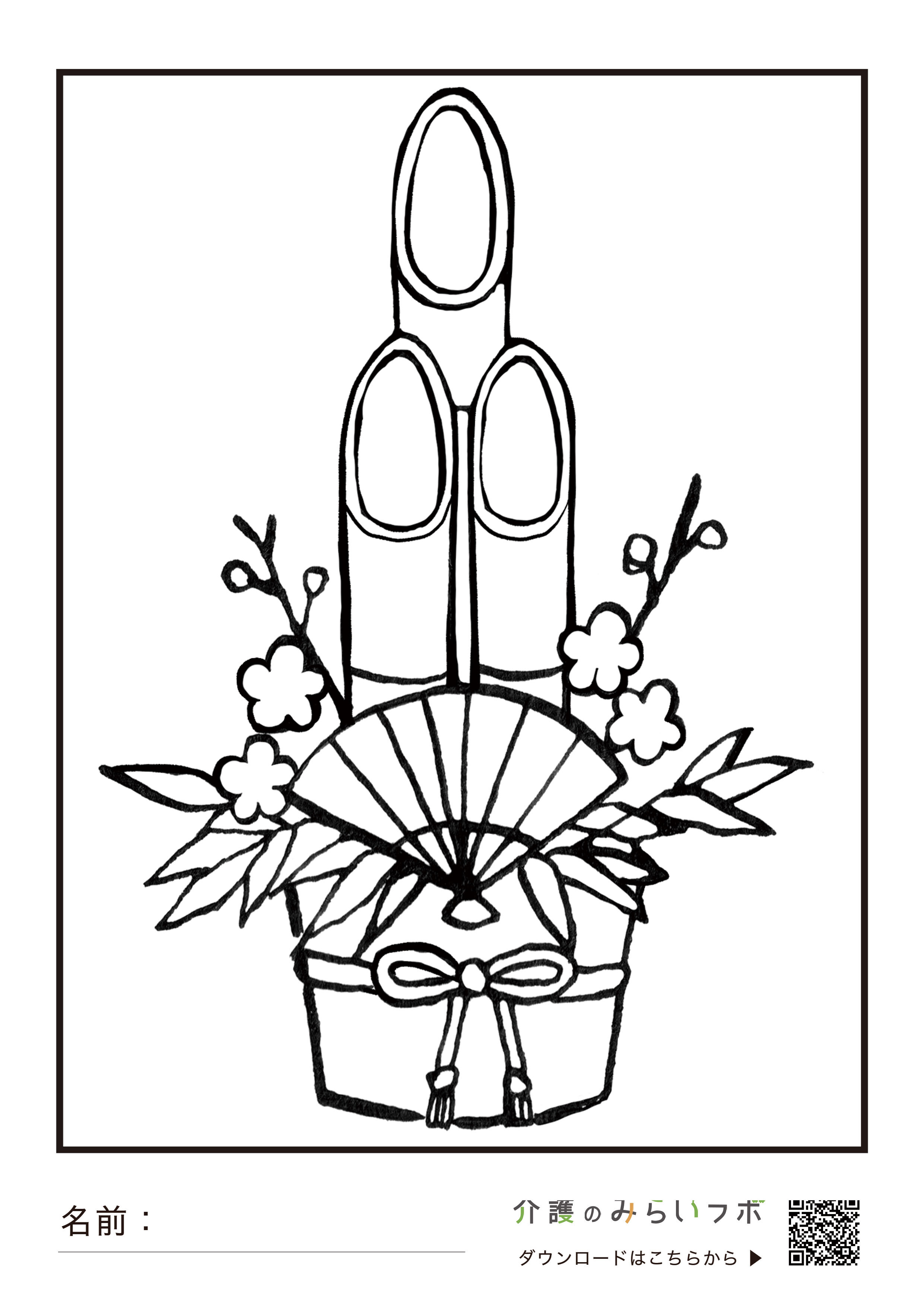 高齢者の塗り絵 1月はお正月!カレンダーの有無を選べる塗り絵ハートページナビ。