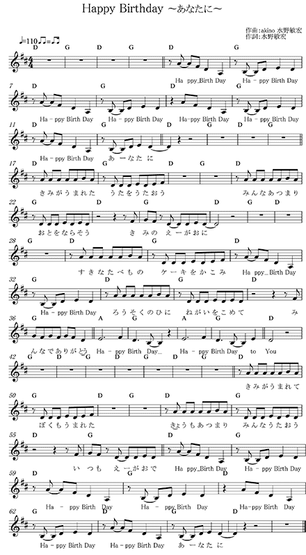 ドレミ付きあり無料楽譜 童謡_ハッピーバースデー 難易度別5楽譜ピアノ塾。