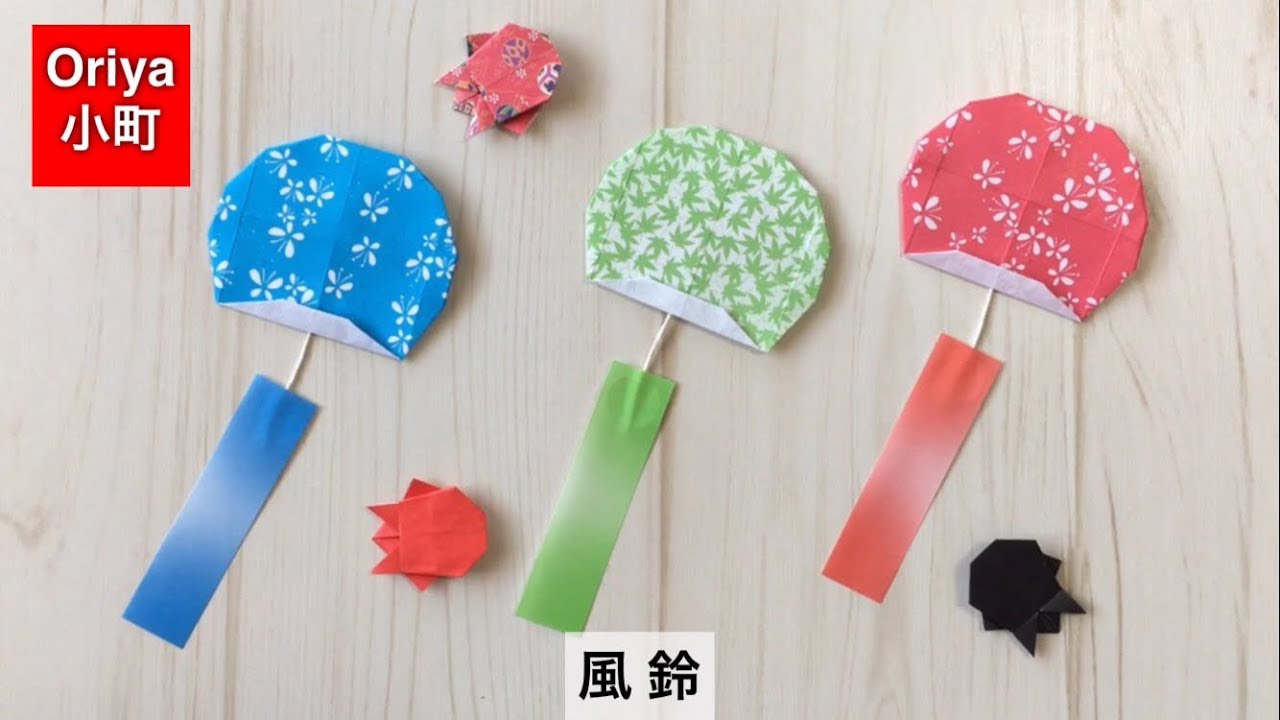 夏祭りを楽しむ折り紙風鈴の作り方。
