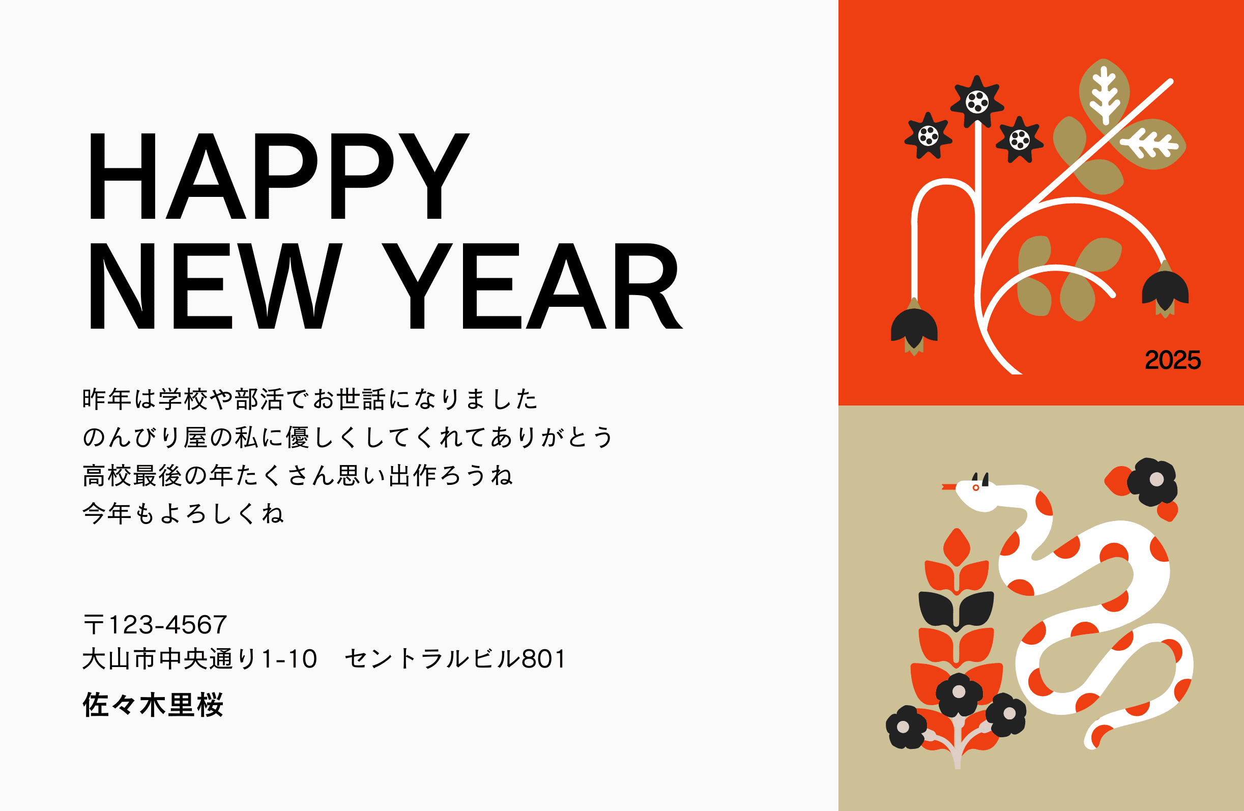 おしゃれな2025年の年賀状デザイン3選! かわいいヘビイラスト - YouTube。