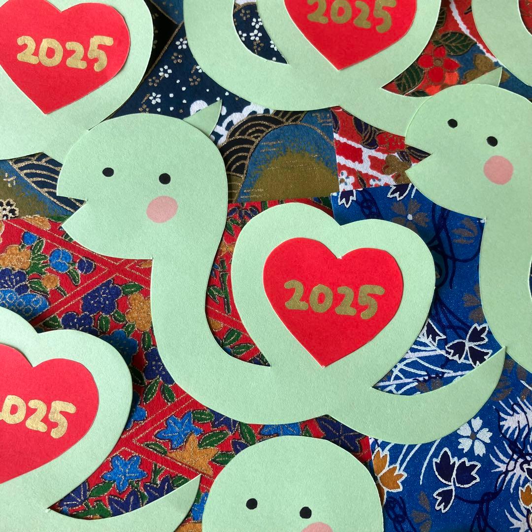 年賀状素材 へび2025 年年賀状ハンドメイドクラフト。