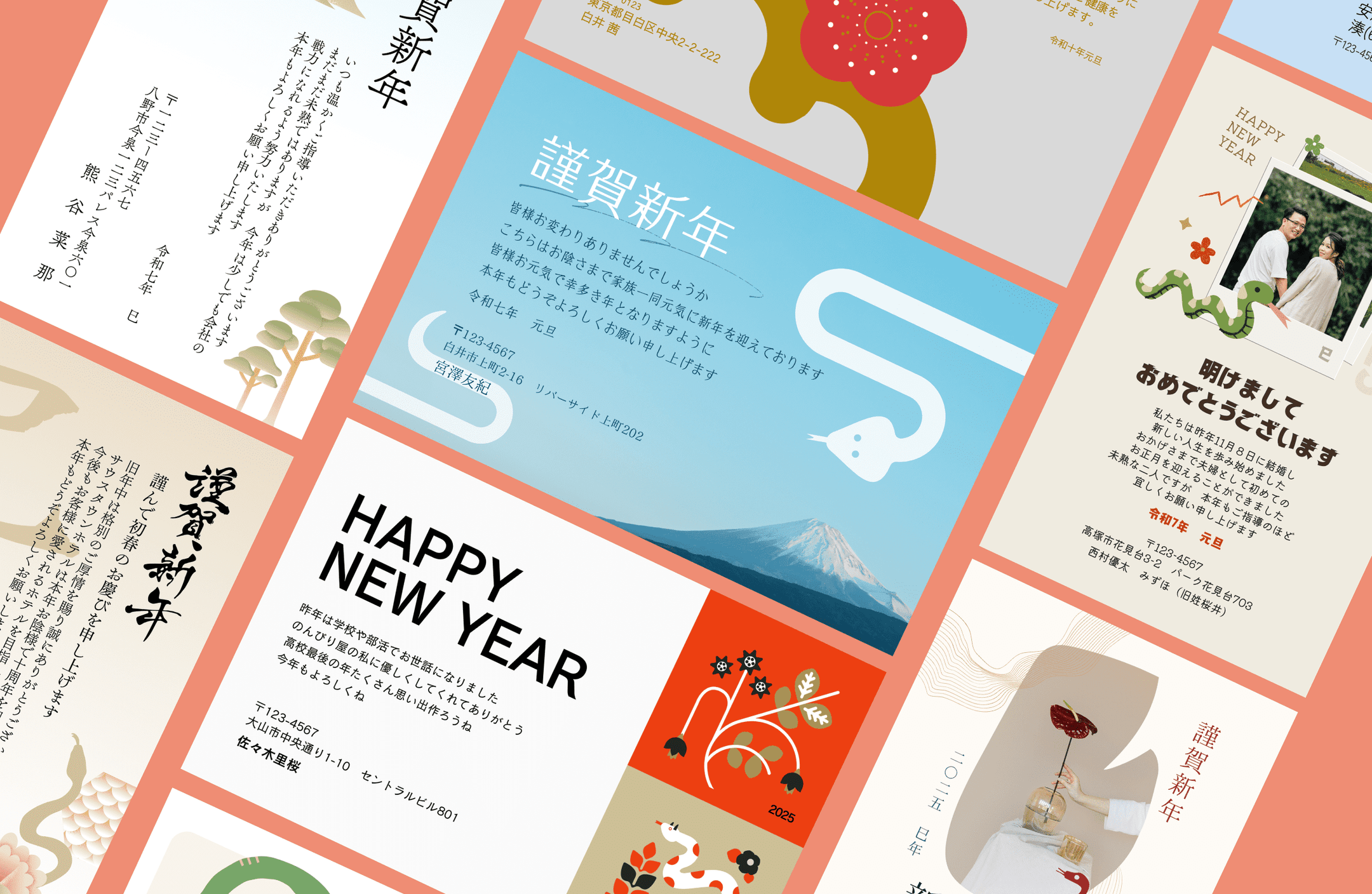 無料で使える! 2025年の年賀状デザイン50選! 巳年 み・へび ・令和7年。